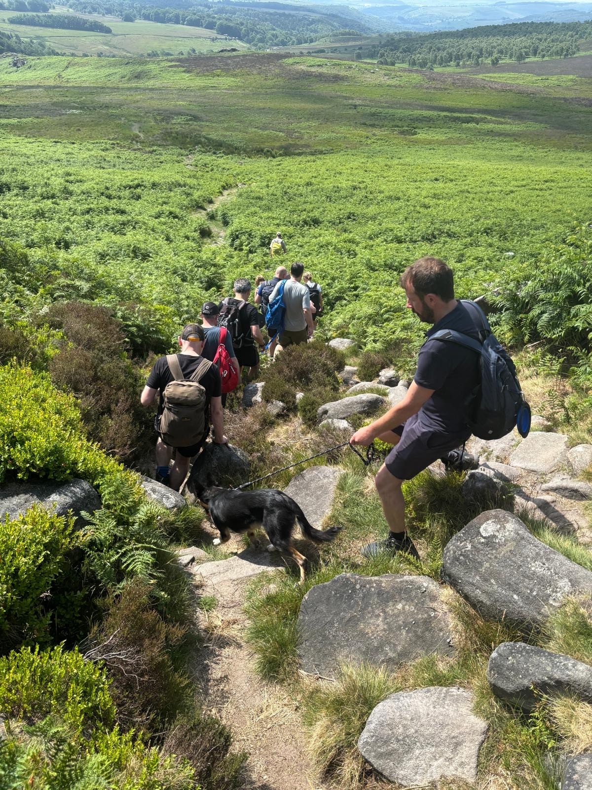 Set against the backdrop of the Peak District, the 13.5km route took the group from Hathersage up to Higger Tor, through Padley Gorge, with a halfway break in the gardens of The Maynard in Grindleford, before returning via a riverside path.